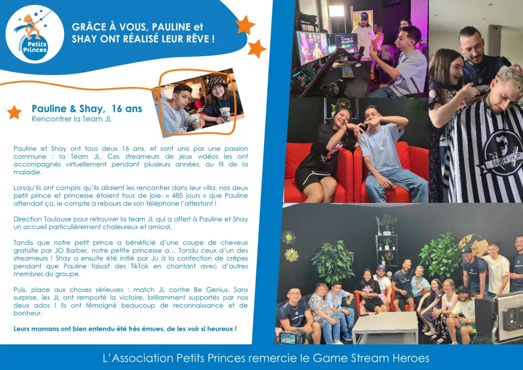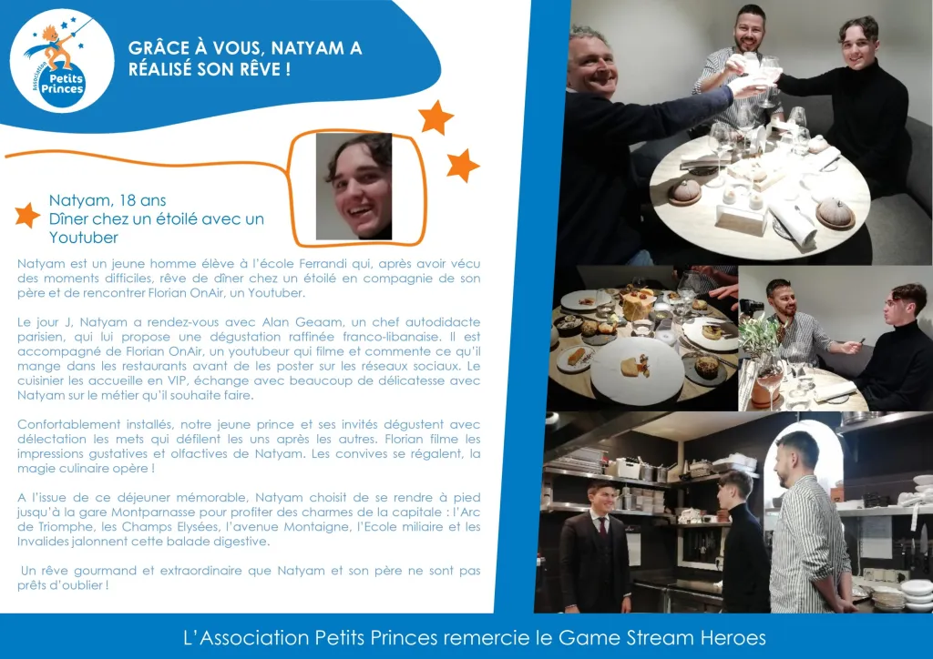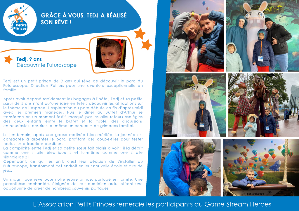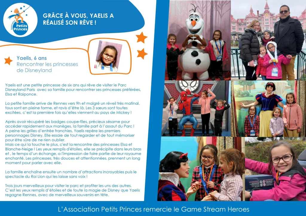 L’Association Petits Princes réalise les rêves des enfants et adolescents gravement malades atteints de cancers, leucémies, certaines maladies génétiques… En vivant ses passions et en réalisant ses rêves, l’enfant trouve une énergie supplémentaire pour se battre contre la maladie.